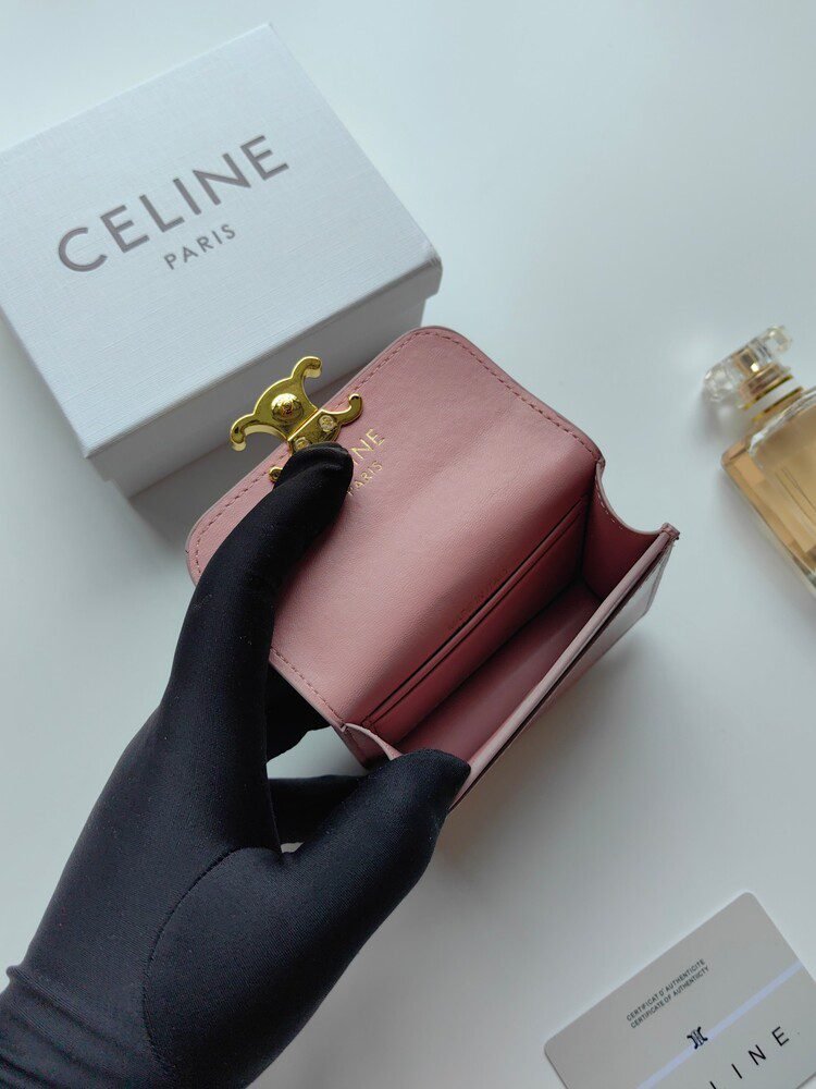????75 Celine New Card Holder, TRIOMPHE Business Card Holder, Classic Pattern Large Surface with Smooth Microfiber Interior, gold Trim with TRIOMPHE Metal Snap Closure, 1 Thickened Main Compartment, 3 Interior Card Slots