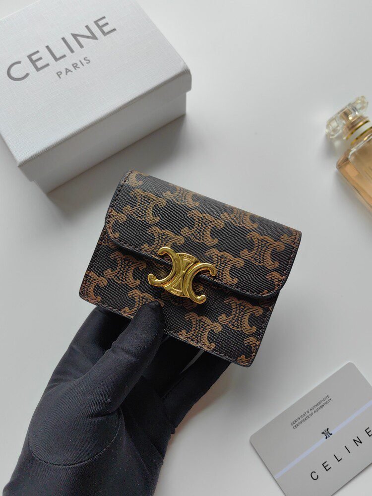 ????75 Celine New Card Holder, TRIOMPHE Business Card Holder, Classic Pattern Large Surface with Smooth Microfiber Interior, gold Trim with TRIOMPHE Metal Snap Closure, 1 Thickened Main Compartment, 3 Interior Card Slots