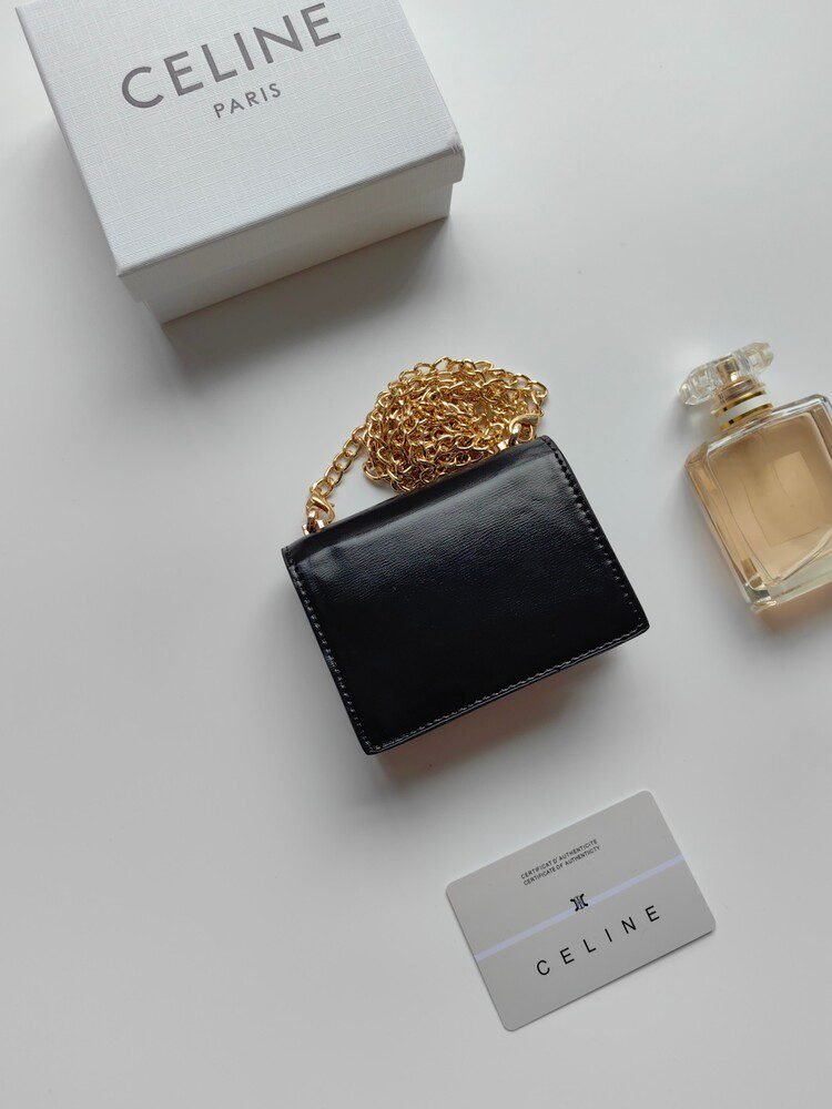 ???? 80 Celine New Chain TRIOMPHE Business Card Bag, Crossbody, Classic Pattern Large Interior with Smooth Microfiber, gold Finish TRIOMPHE Metal Snap Closure, 1 Thickened Main Compartment, 3 Interior Card Slots