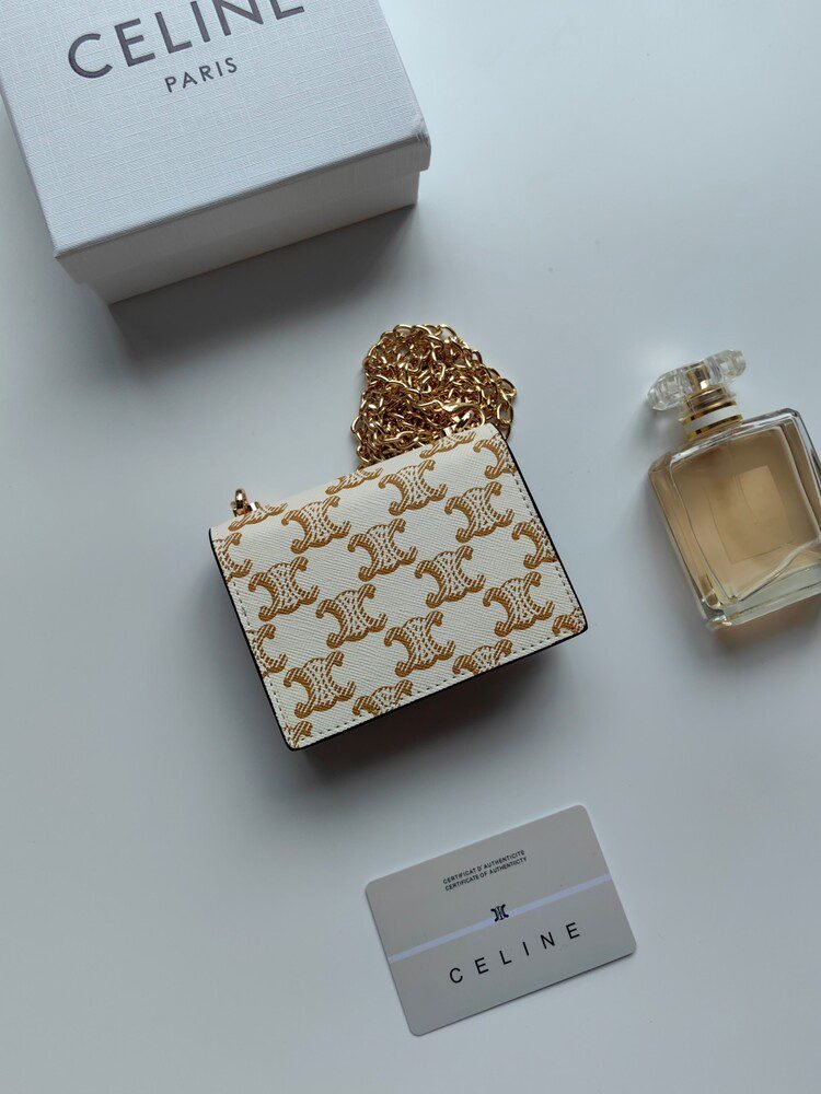 ???? 80 Celine New Chain TRIOMPHE Business Card Bag, Crossbody, Classic Pattern Large Interior with Smooth Microfiber, gold Finish TRIOMPHE Metal Snap Closure, 1 Thickened Main Compartment, 3 Interior Card Slots