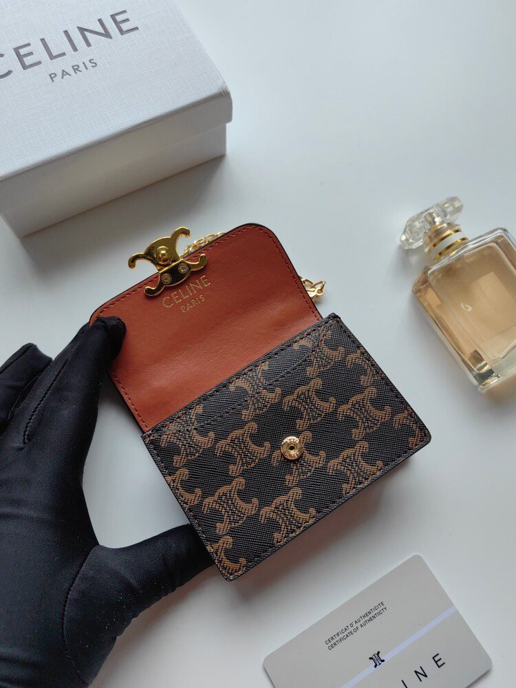 ????80 Celine New Chain TRIOMPHE Business Card Bag, Crossbody, Classic Pattern Large Interior with Smooth Microfiber, gold Finish TRIOMPHE Metal Snap Closure, 1 Thickened Main Compartment, 3 Interior Card Slots