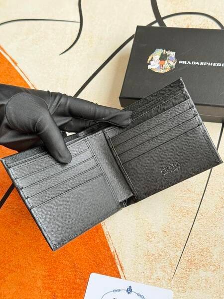 Prada Bags 75PRADA Men’s Short Wallet Counter Latest Style, Official Website Synchronization, Genuine Development, Model 2M0513 # Color as shown, blue. The blue leather texture is excellent, with threaded lining. Imported white steel hardware accessories feature a complex color-blocking design, making it more fashionable and unique. Dimensions: Length 11cm, Height 9cm