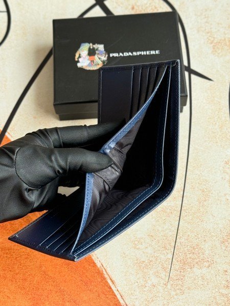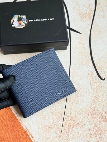 Prada Bags 75PRADA Men’s Short Wallet Counter Latest Style, Official Website Synchronization, Genuine Development, Model 2M0513# Color as shown, blue. The blue leather texture is excellent, with threaded lining. Imported white steel hardware accessories feature a complex color-blocking design, making it more fashionable and unique. Dimensions: Length 11cm, Height 9cm