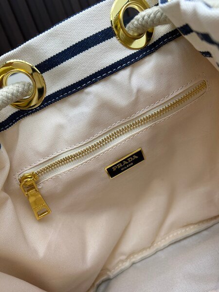Prada Bags Batch 230 Prada New Products Let’s Check Out This Season’s Super Eye-catching Bags Canvas Striped Mariner Bucket Handbag, Red and White Stripes Woven Handle ~ Large capacity, ultra-lightweight, especially suitable for commuting! color scheme also suits vacation well⛱ The bag design is very thoughtful with metal rings on both sides, allowing you to hang your favorite doll pendants freely ​ Dimensions 26x28x12, model 2548