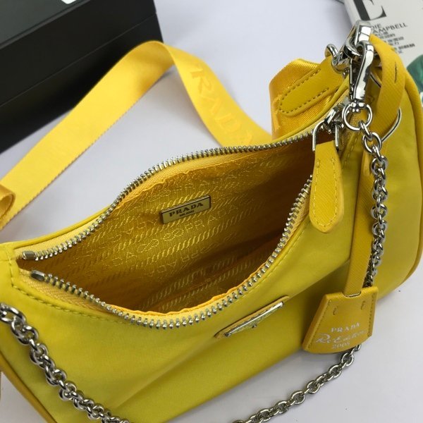 Prada Bags P360 Top Original Single Exclusive Box Prada Nylon Handbag/Underarm Internet Celebrity Sisterhood Group Crazy Planting Trending in Fashion Circle New Model! This Hobo Design Amazing Three-in-One Waist Bag/Crossbody/Single The Handle Has Been Replaced Chain, Adding Touch of Sexy an Underarm Comes a Long My Favorite is Small Pendant Bag Hanging on the Shoulder Strap Can Also Be Used as Accessories Other Bags Pants Usually Matches with Various Outfits No Problem, Guys Hurry Up and Get It, It’s So Beautiful Model: 1BH204, Size: Length 22X Height 12x Bottom 6cm