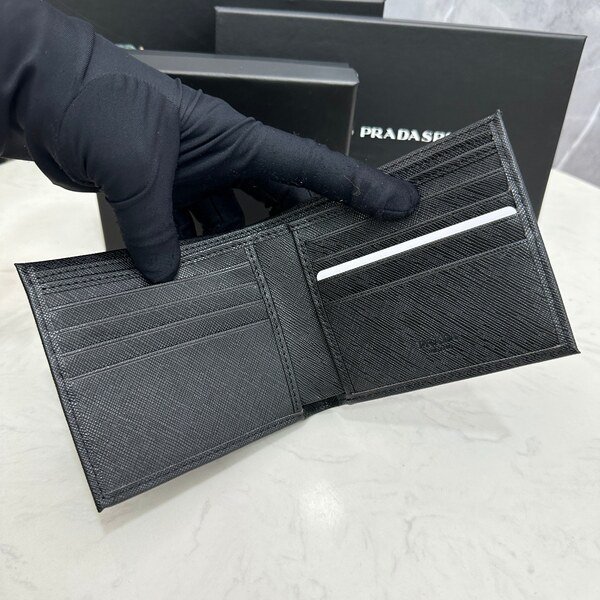 PRADA, Original Quality Short Clip Hot Item Shipped: ✌ ✌ ✌ Counter Quality Real Product Photos [Strong]! Size: 301 Original Quality Leather: Original Ten-Stripe Pattern Color: Black Loose Mark, Size 10X9Ⅹ2