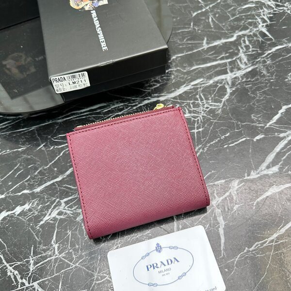 Prada Bags P90 PRADA Official Synchronized New Shipment, Short Clip Hot Item Shipment: ✌ Product Cabinet Special Real Shot [Strong]! Size: Quality Leather: Original Character Ten Pattern Color: Epoxy Gold Triangle Logo Plum Bright Red, Pink, Black, Apricot, Sky Blue, Purple Size 10X9Ⅹ2, Model LM211