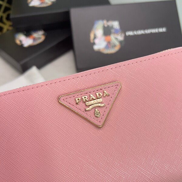 Prada Bags P95 PRADA, Small Zipper Wallet Classic Work, Simple Fashion, Italian Top Grade Original Single Cross Grain Cowhide Leather with Excellent Texture, Imported Threaded Lining, White Steel Metal Hardware Accessories! and Even Stitching, Exquisite Workmanship, Size: 19x10x2.5, Color: Triangle Label Plum Bright Red, Blue, Black, Pink, Number: ML201