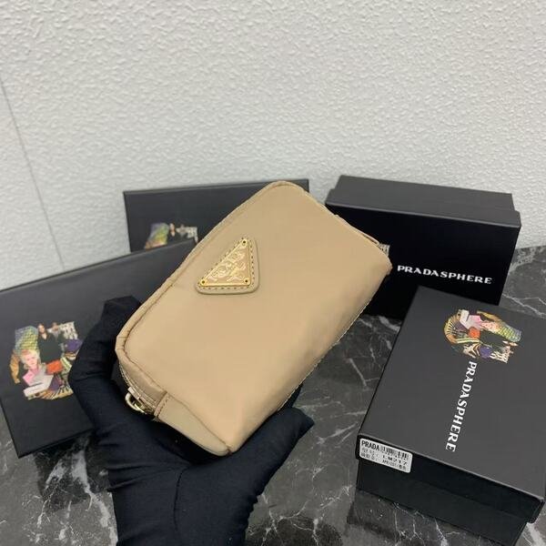 Prada Bags PRADA Official Synchronized New Arrival, Enamel Triangle Metal Logo Zipper Closure Nylon Cosmetic Bag Regular Women’s Style✌✌✌ Product Cabinet Special Real Shot [Strong]! Size: Quality Leather: Original Color: Gold Black Silver Buckle, Plum Red, Pink, Sky Blue, Apricot, Green, Lavender Purple, Size 12㎝*3.5㎝*8㎝, model LM217